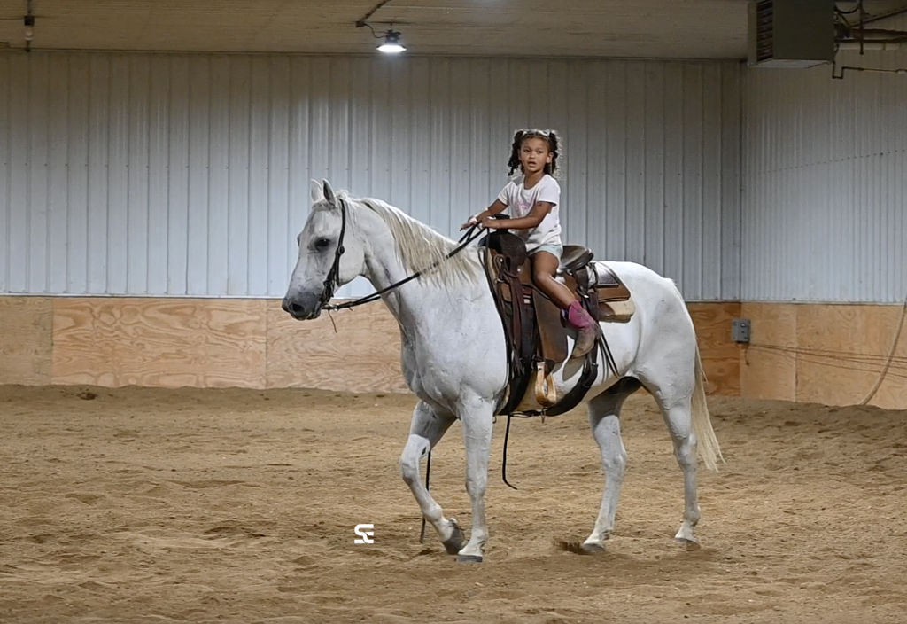 “Rudy” is a 11 year old, flea bitten gray quarter horse gelding with nothing but more to love. At only 14.2 hands, if you’re someone to say “I like a quarter horse, and I want them thick” – he is what you pull out of a hat. We’ve had 5 years old ride him and he’s took care of them every single time.