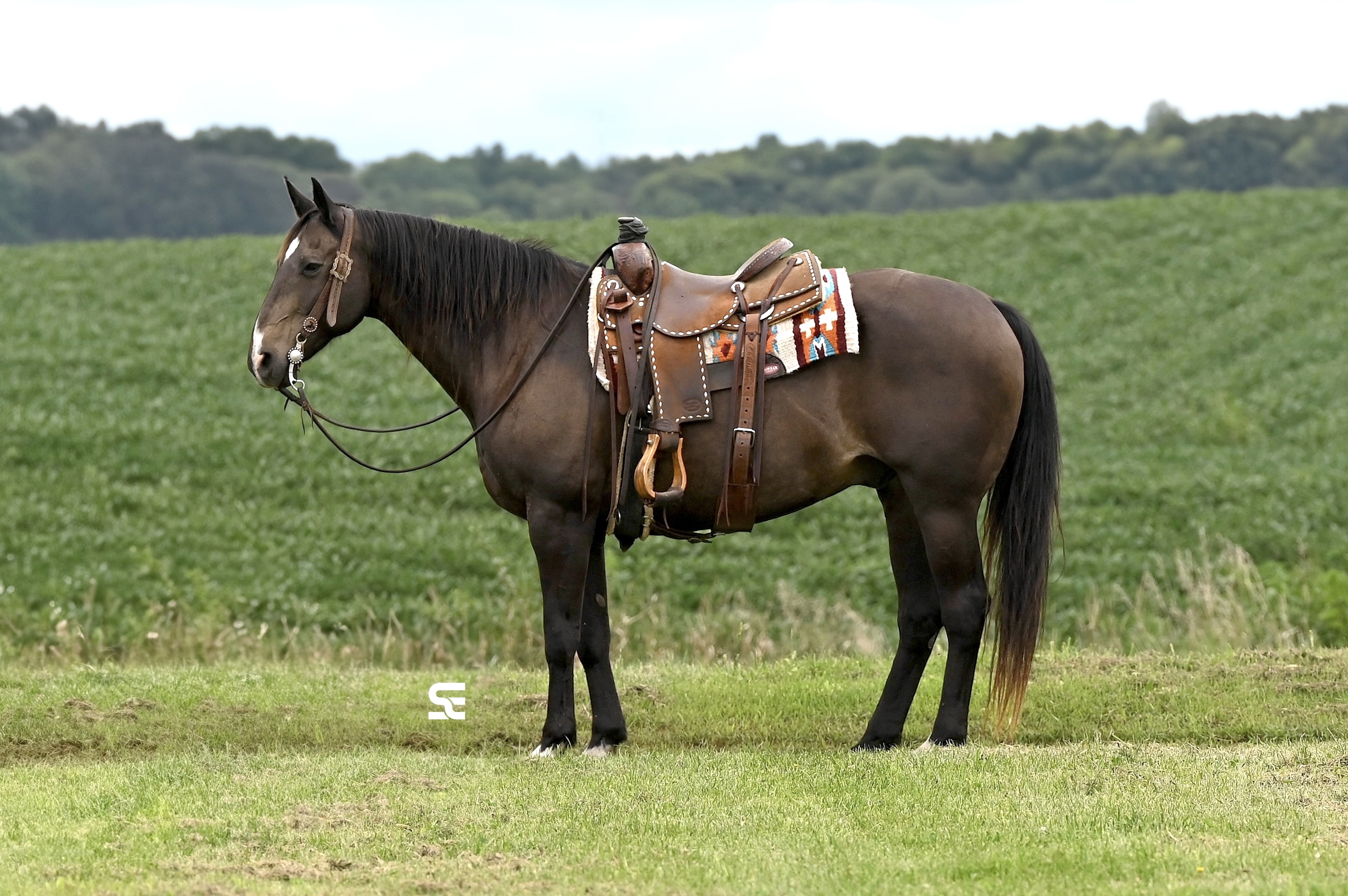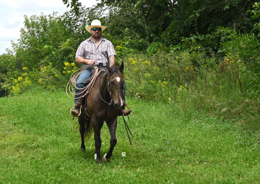 He is broke to ride, one hand neck reins, has a low headset, and a big stop! Stanley has been ridden around cows, inside the arena, and out on the trail independently. He will cross through water, brush and logs with ease. He has been rode on the road and is used to all kinds of traffic and all of our heavy machinery here on the farm. He will saddle up gentle every time and he will stand perfect and takes the bridal very easy.